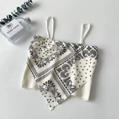 تألقي بأحدث صيحات الموضة مع توبنا القصير غير المتماثل بطبعة الباندانا. يتميز هذا التوب العصري بطبعة بيزلي كلاسيكية وحاشية غير متماثلة فريدة لإطلالة عصرية وعصرية. إنه التوب المثالي للتنسيق مع بنطالك الجينز أو الشورت المفضل لإطلالة أنيقة وبسيطة.