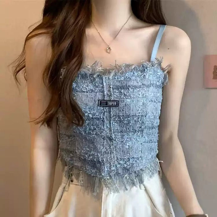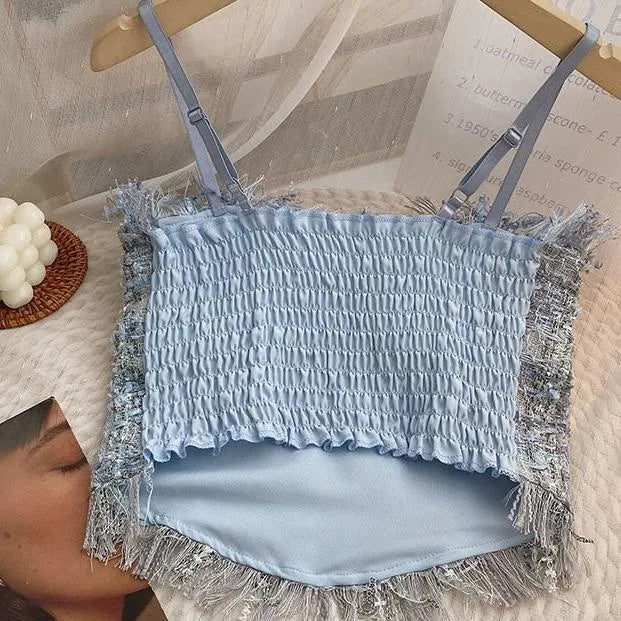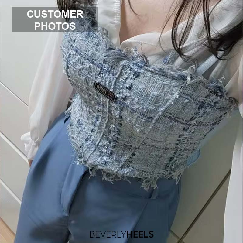 بلوزة قصيرة أنيقة من التويد مع حواف متهالكة