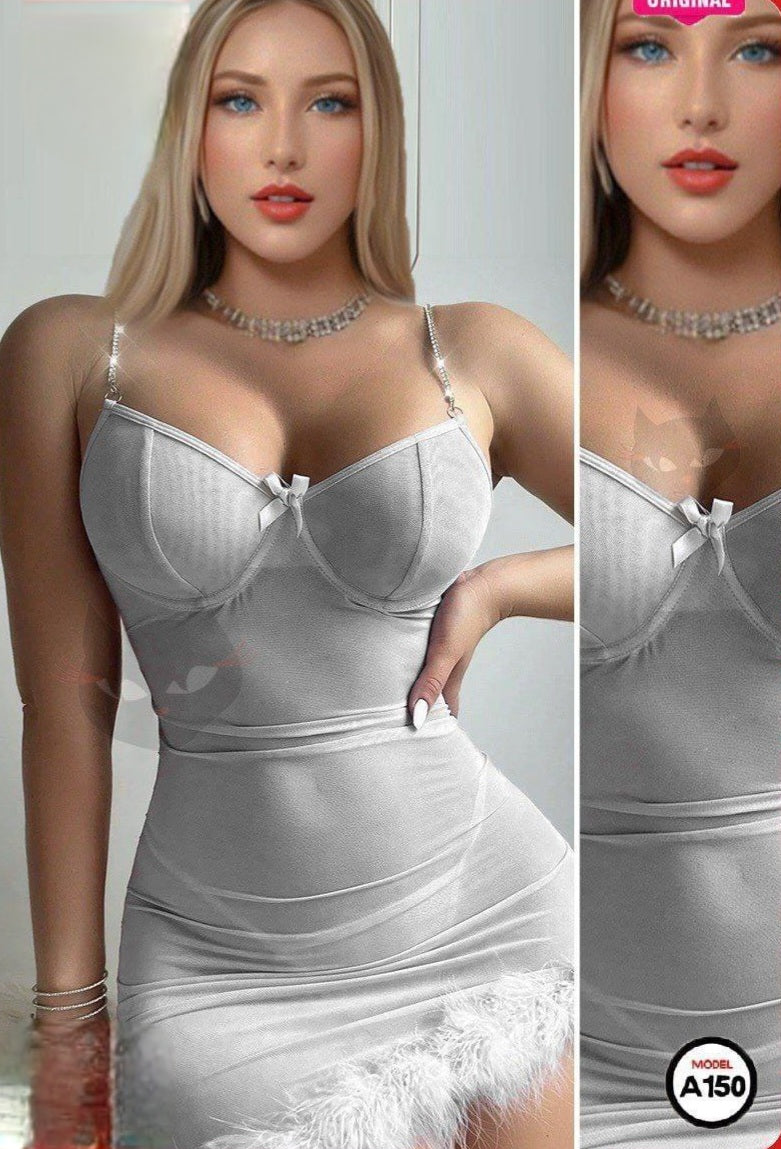 A charming and feminine mini lingerie dress. It features a form-fitting design with elegant lace, perfect for a soft and alluring look.